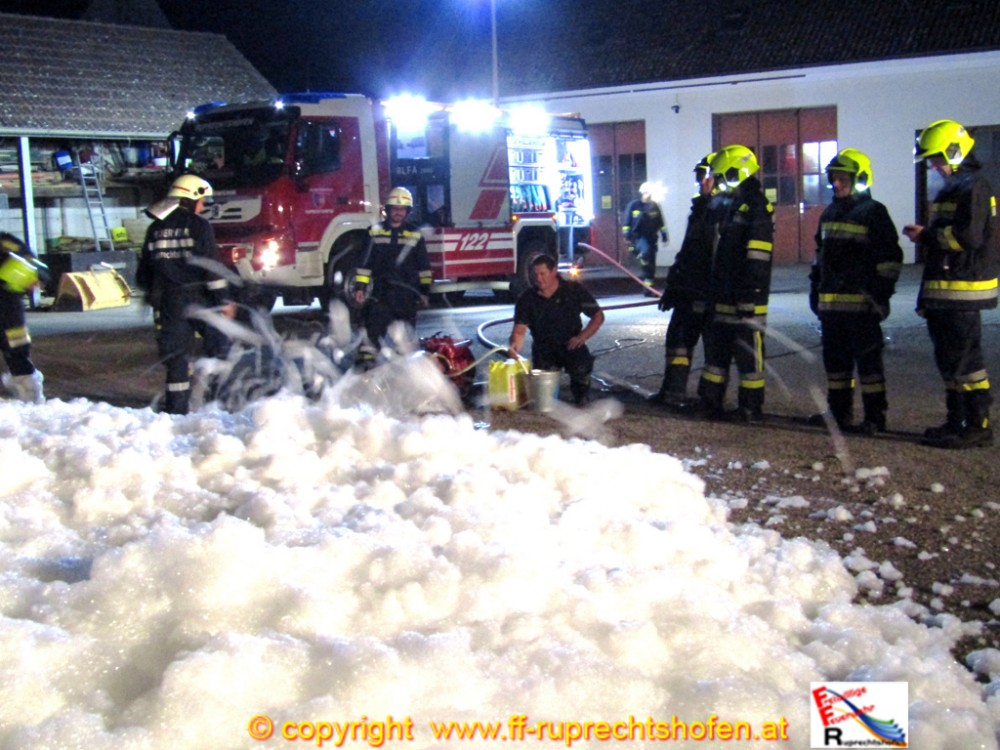 Ziel dieser Übung war, alle in unserer Feuerwehr möglichen Schaumarten, die bei Einsätzen erforderlich sein können, in Theorie als auch im praktischen Einsatz zu schulen bzw. zu beüben.