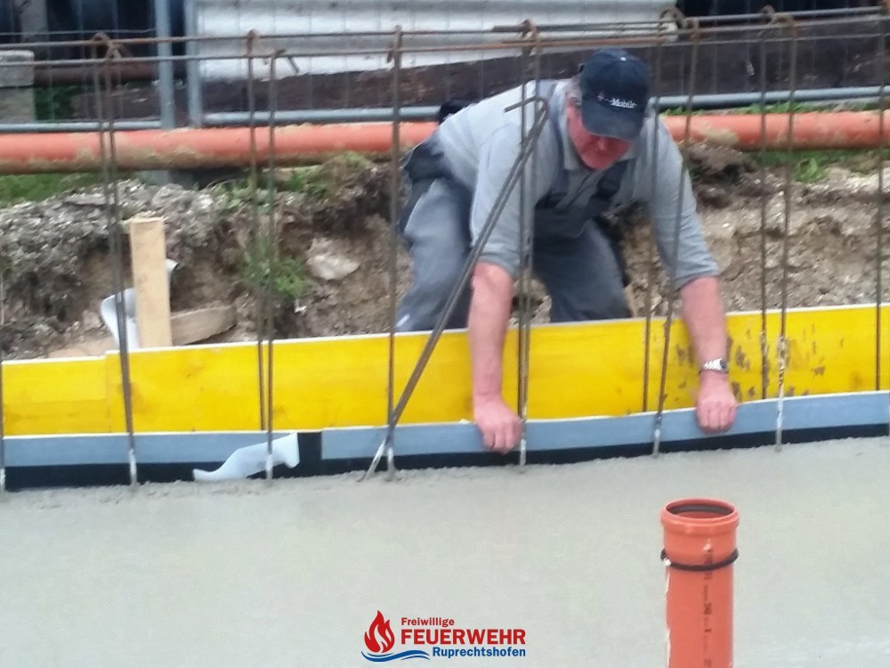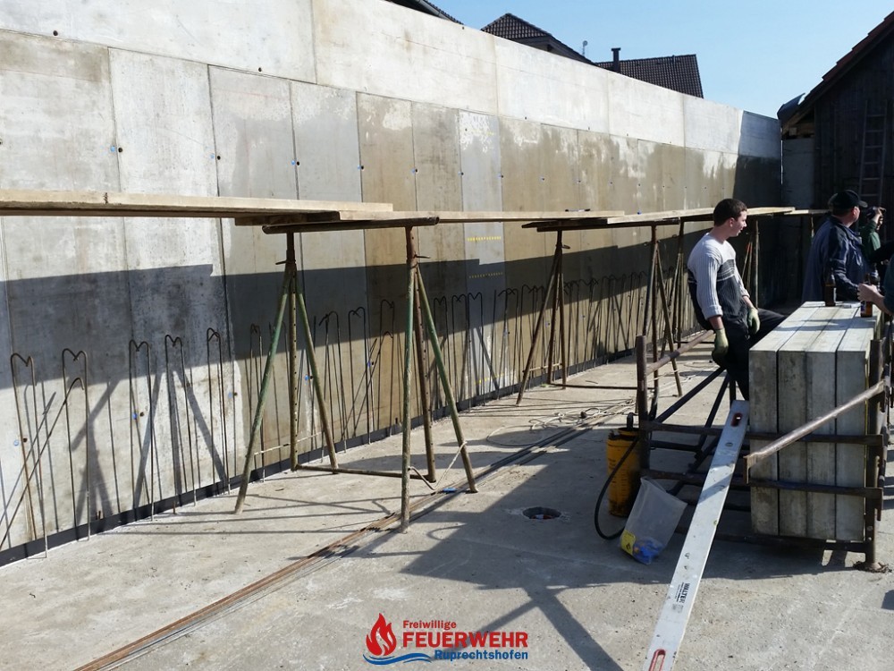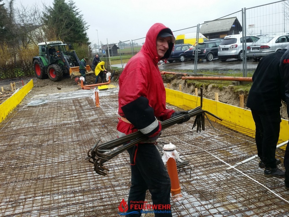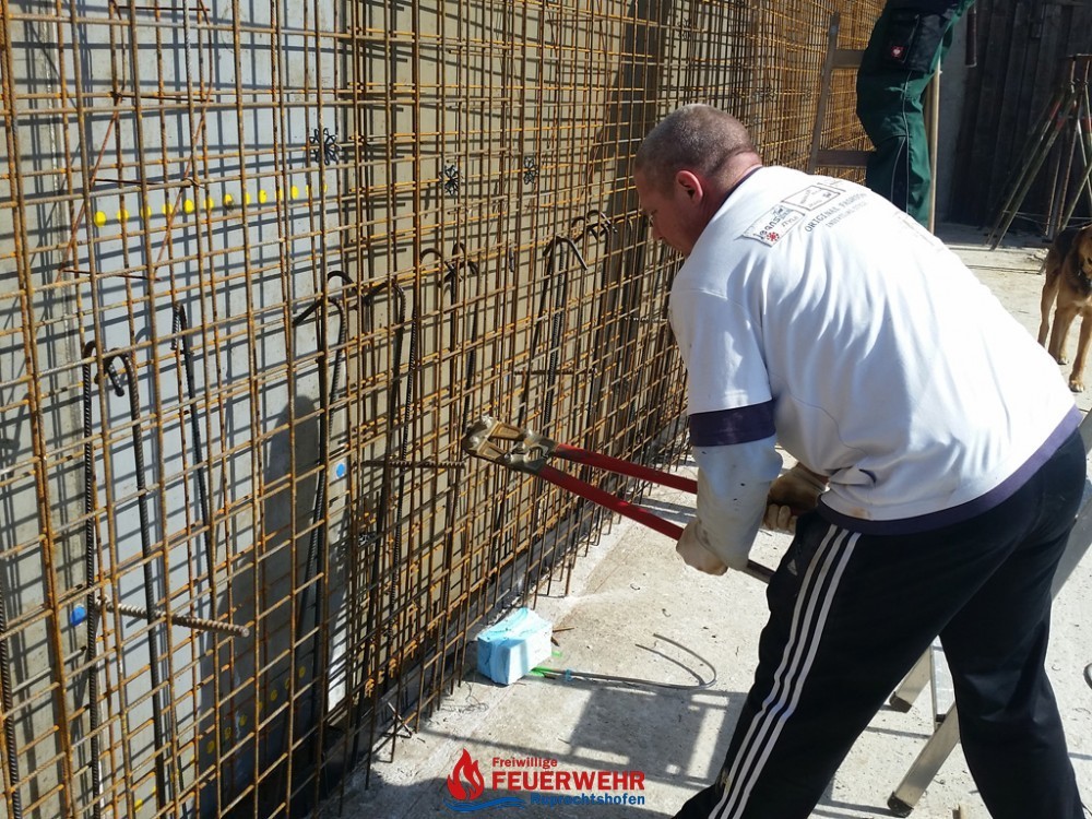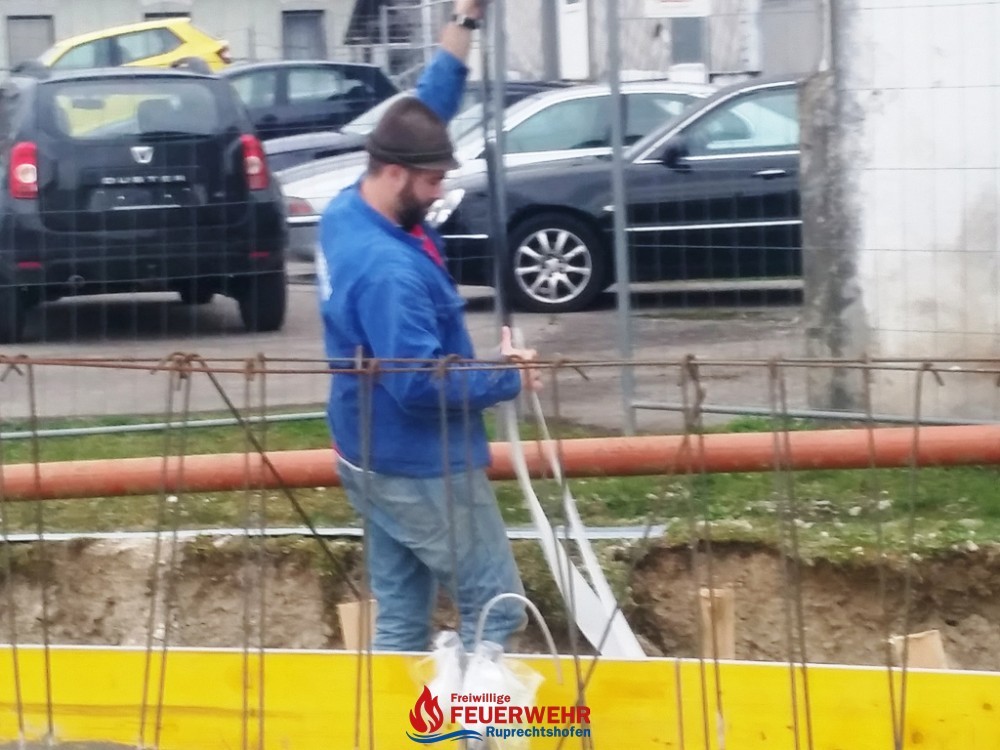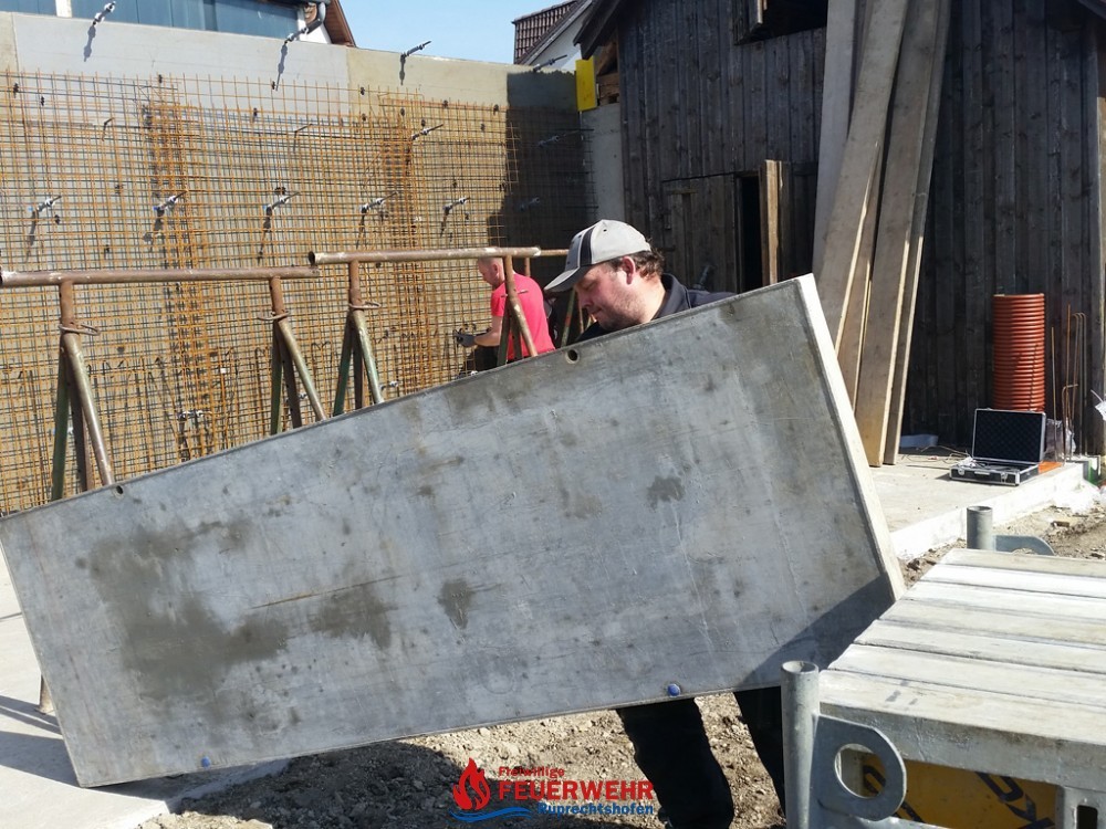 Am Samstag, den 25. März meinte es der Wettergott gut mit allen Helfern auf der Feuerwehrzubau – Baustelle. Die Schalung für die Rückwand der Halle wurde aufgestellt und das Bewährungseisen eingebunden.