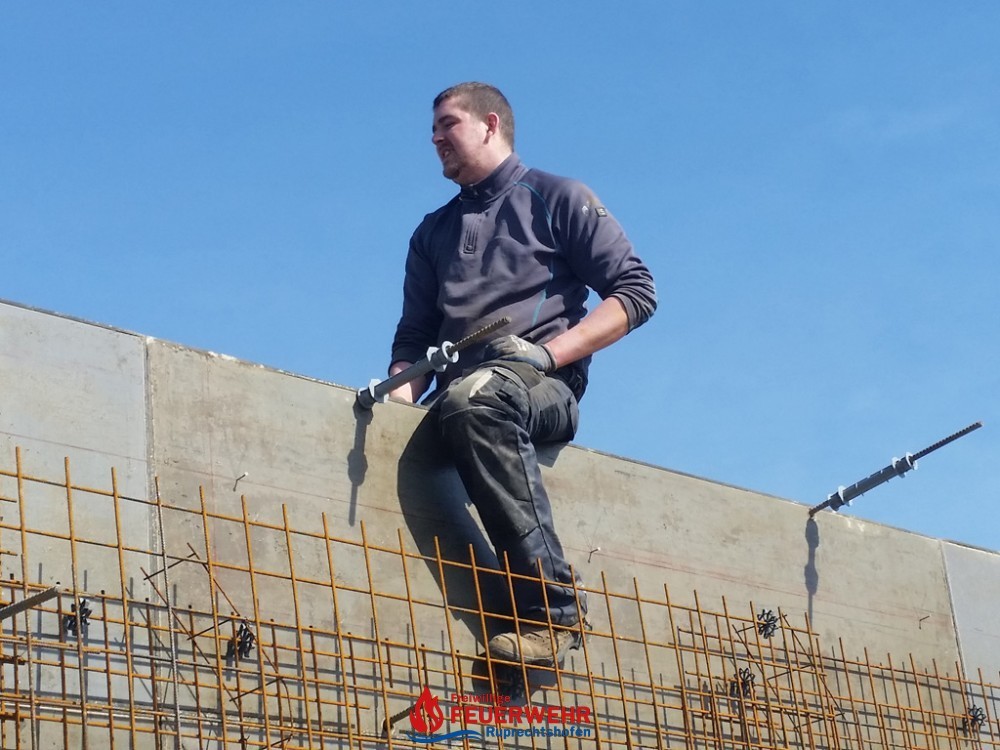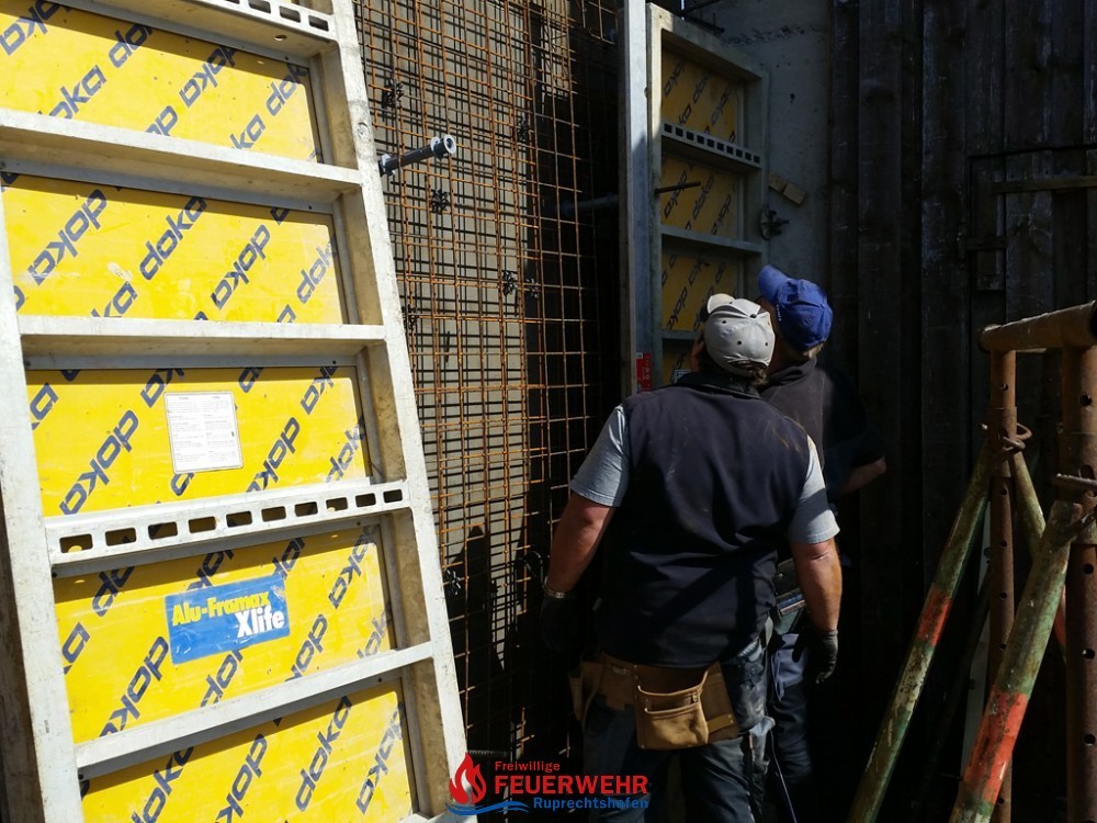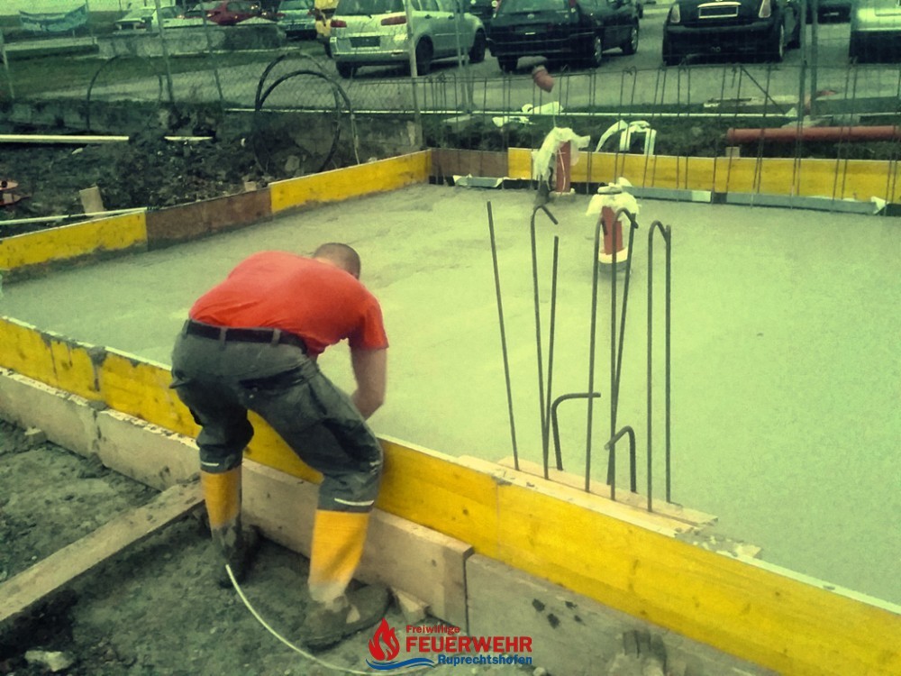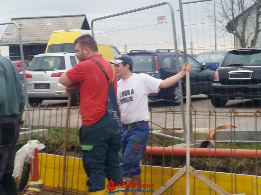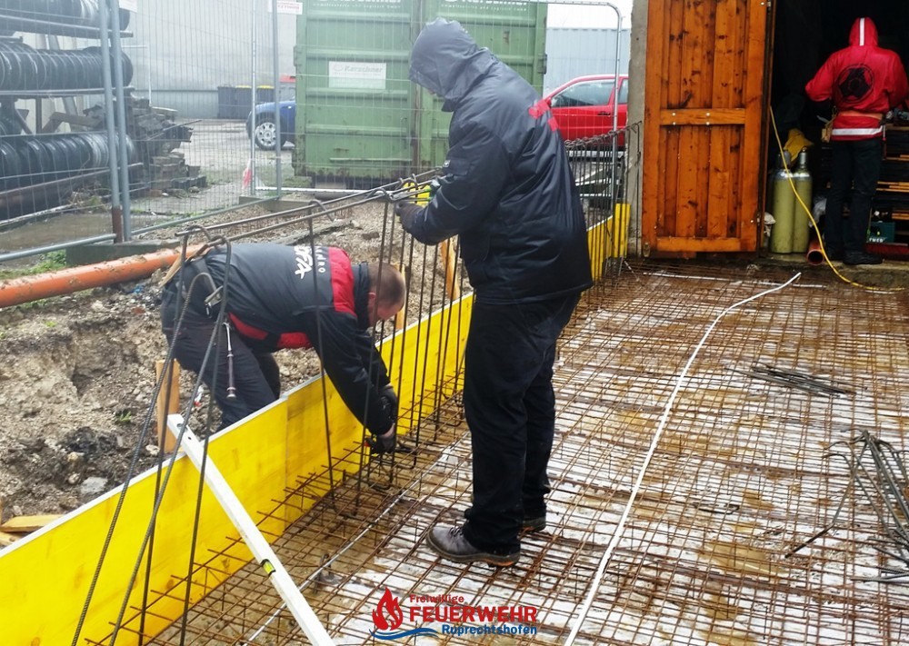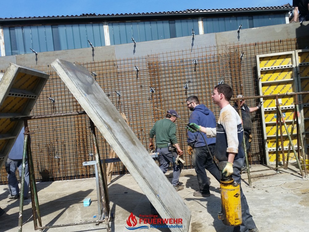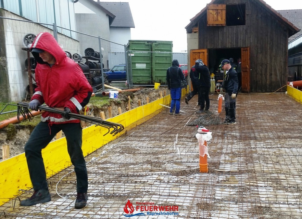 Am Samstag, den 25. März meinte es der Wettergott gut mit allen Helfern auf der Feuerwehrzubau – Baustelle. Die Schalung für die Rückwand der Halle wurde aufgestellt und das Bewährungseisen eingebunden.