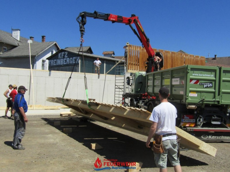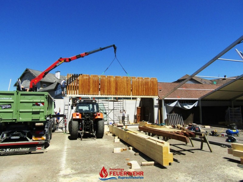Infolge des immer größeren Platzbedarfs für Gerätschaften und Materialien für den Katastropheneinsatz, einen Platz für alte Fahrzeuge und Ausrüstungsgegenstände der FF Ruprechtshofen, aber auch für unser jährliches Fest, wurde von der Mitgliederversammlung mit Unterstützung der Gemeinde im Jänner dieses Jahres ein Zubau am Bauhofareal  beschlossen.