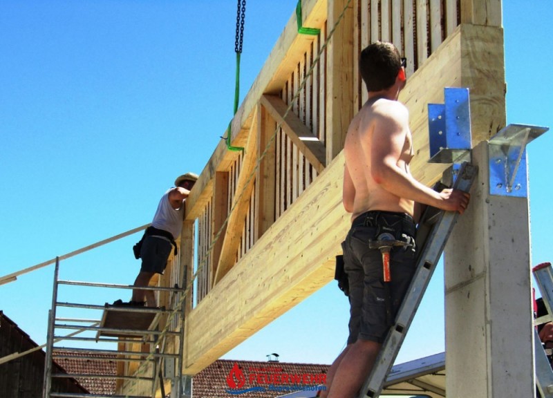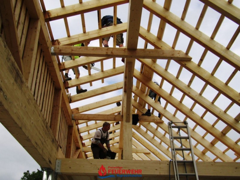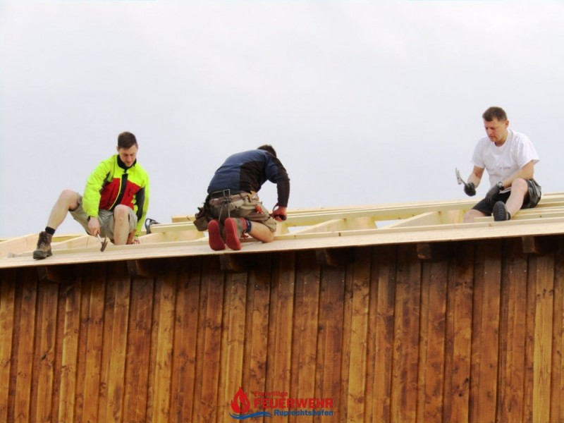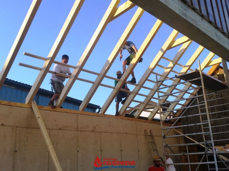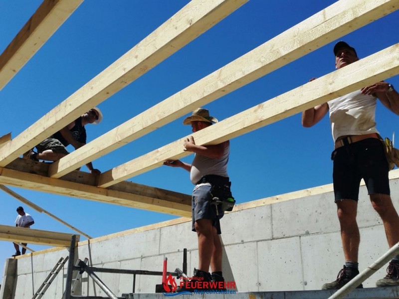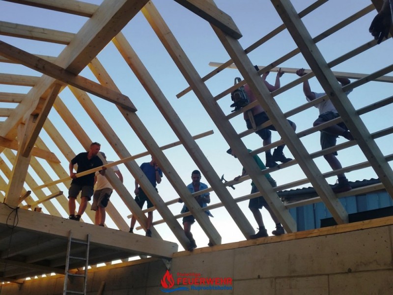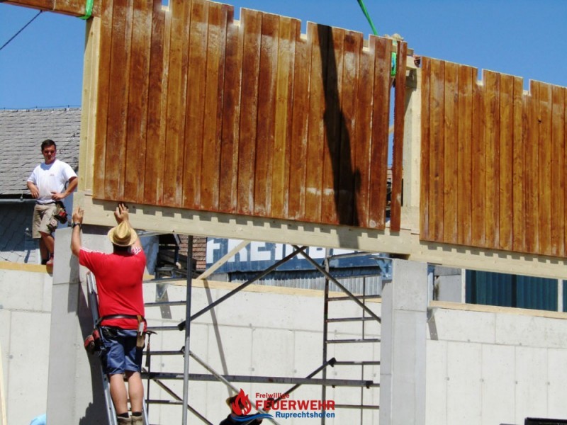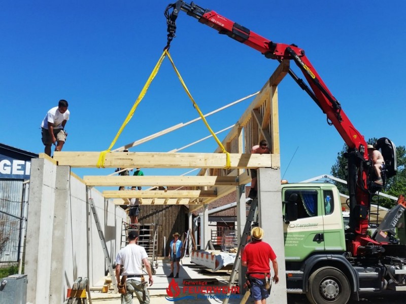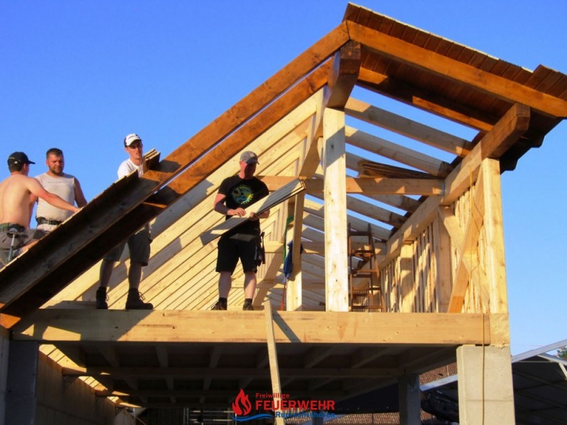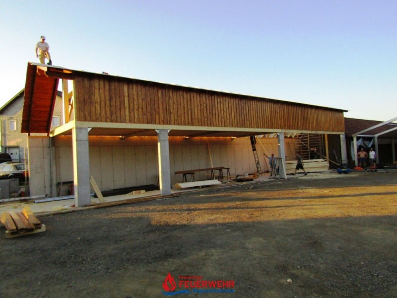 Bei sehr guter Arbeitsbeteiligung unserer Kameraden wächst unsere neue Halle Hub für Hub.