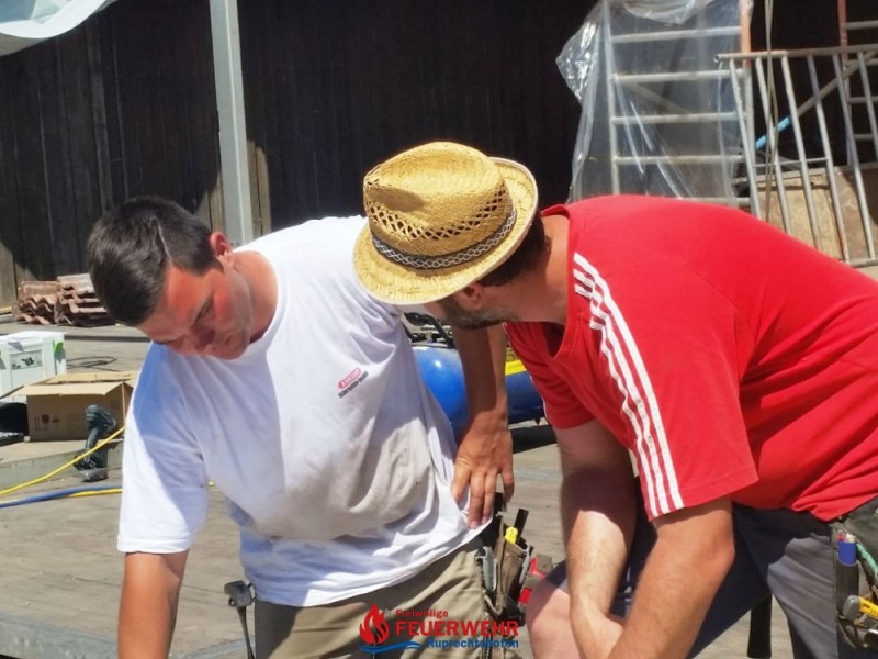 Um 07:00 Uhr Beginn der Aufsetzarbeiten auf unserer Baustelle. Entgegen der ersten Tage bei Baustellenbeginn, bei teils strömenden Regen, ist es heute der wärmste Tag des Jahres und sehr schweißtreibend.