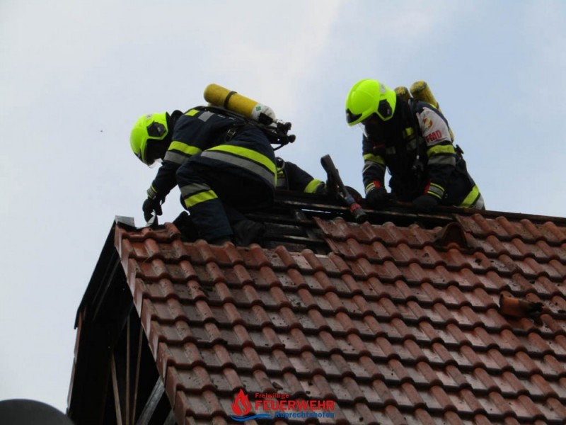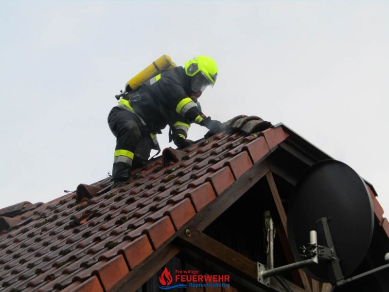 Der Firstbereich des Daches wurde geöffnet und der Entstehungsbrand in der Holzkonstruktion gelöscht.