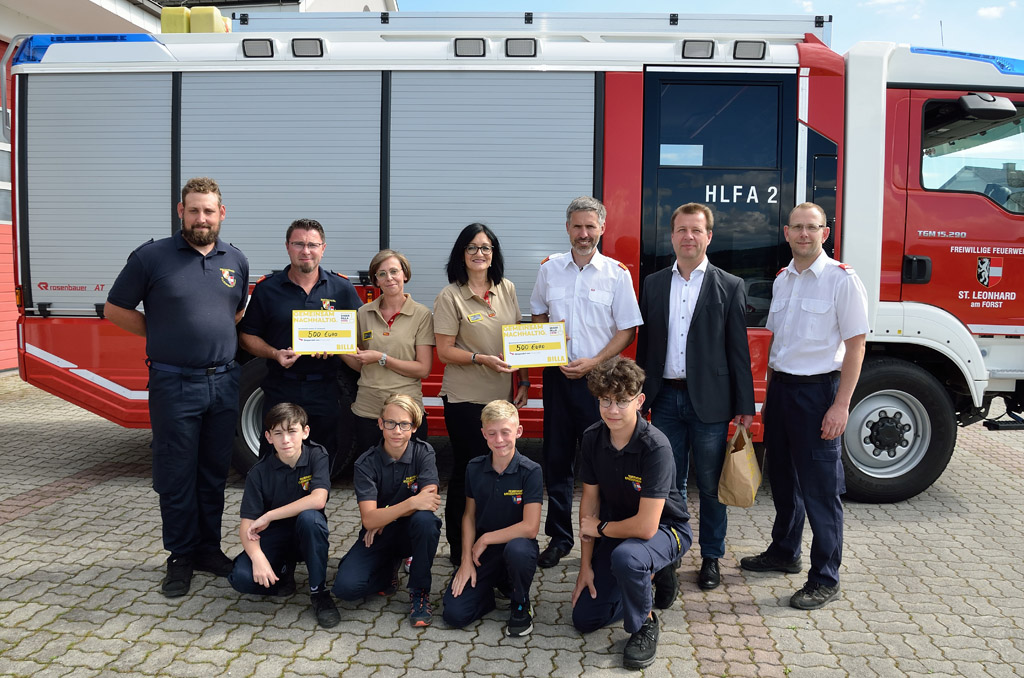 In der Billa Filiale St. Leonhard/F wurden diese an die Kunden weitergegeben. Sie beschlossen, den Erlös von 1.000 Euro der Feuerwehrjugend St. Leonhard und Ruprechtshofen zu spenden.