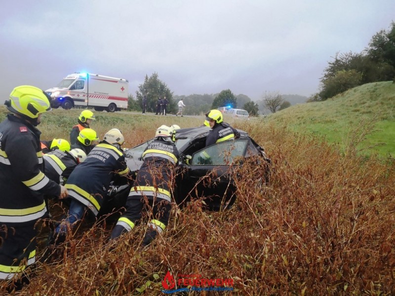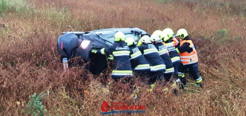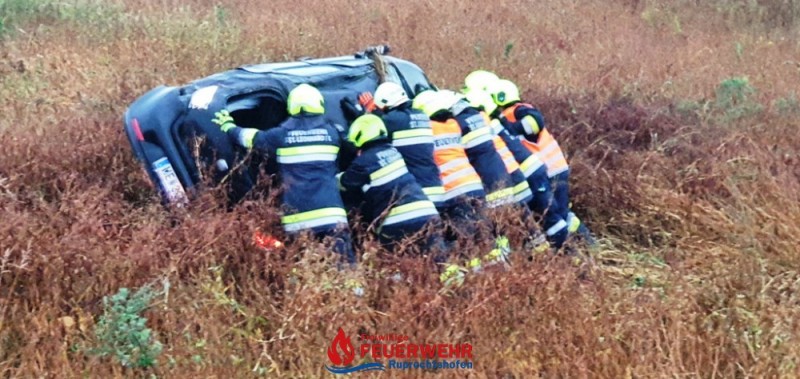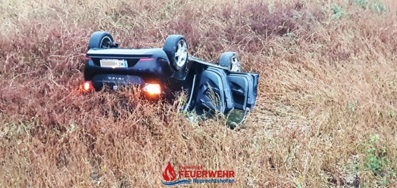 Der/die Fahrer/in war bereits aus dem, am Dach liegenden Fahrzeug befreit und wurde vom Roten Kreuz versorgt.