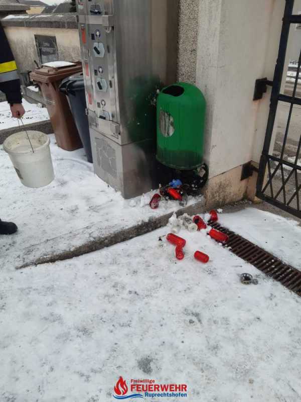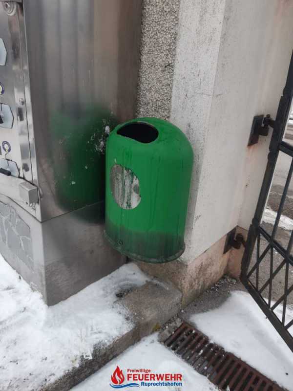 Der Müllbehälter wurde komplett entleert und alle Glutnester gründlich abgelöscht.
