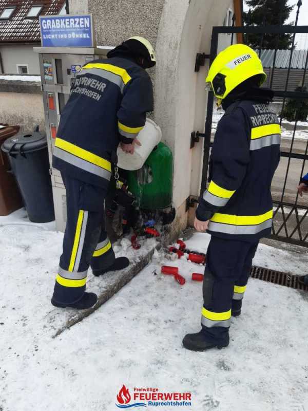 Telefonisch erhielt die Feuerwehr Ruprechtshofen den Alarm für einen kleinen Brandeinsatz im Bereich des Friedhofseingangs.
