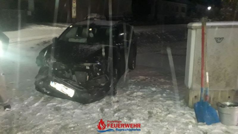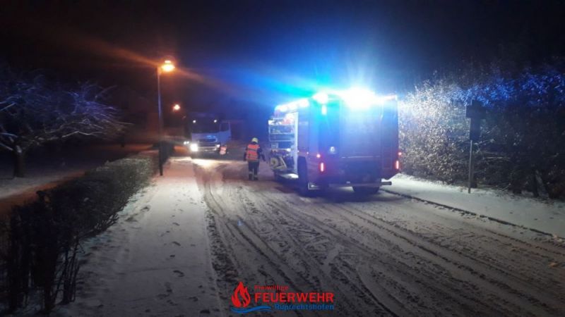 Die winterlichen Fahrbahnverhältnisse erschwerten jedoch den Einsatz. Der beschädigte PKW musste vom Straßenrand entfernt und verkehrssicher abgestellt werden.