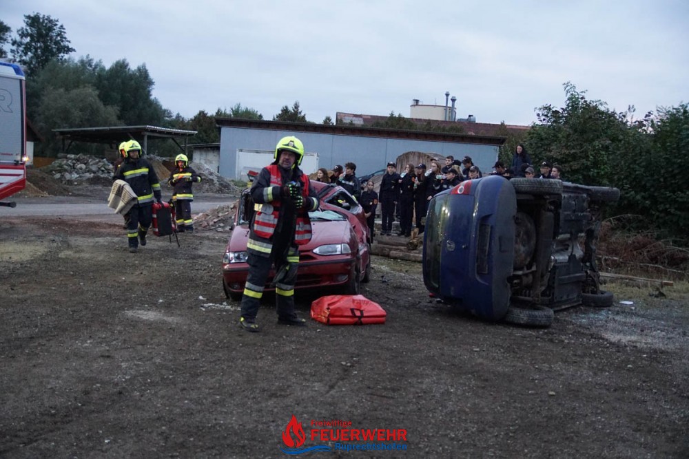 Um 17:00 Uhr startete die Übung mit einer kurzen Unterweisung der FJ – Mitglieder über das Übungsszenario und der Einweisung bezüglich der Handhabung der hydraulischen Rettungsgeräte.