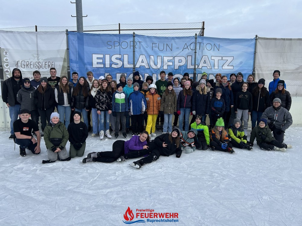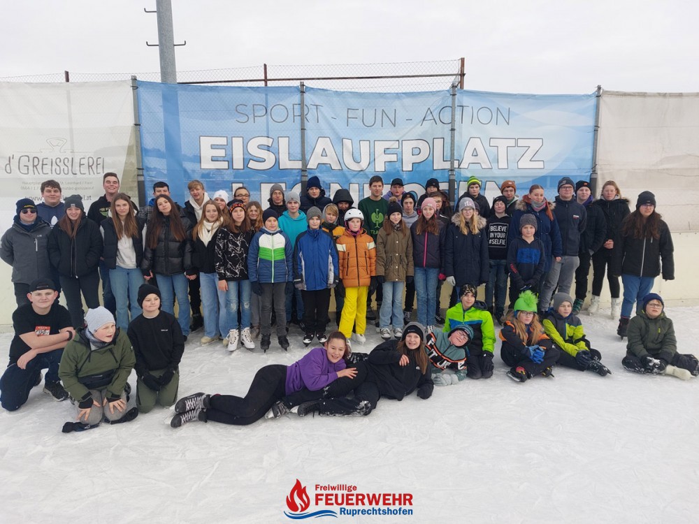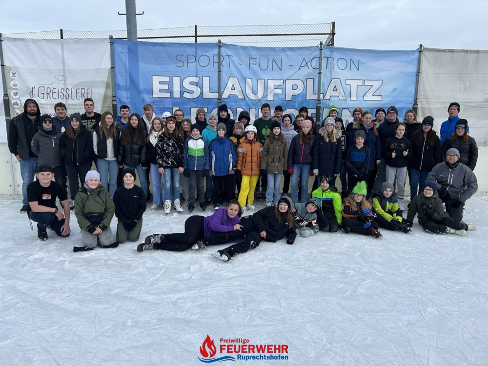 Insgesamt 61 Feuerwehrjugendmitglieder von 5 Feuerwehren verbrachten gemeinsam einen spannenden, schönen Nachmittag am Eislaufplatz Leonhofen.