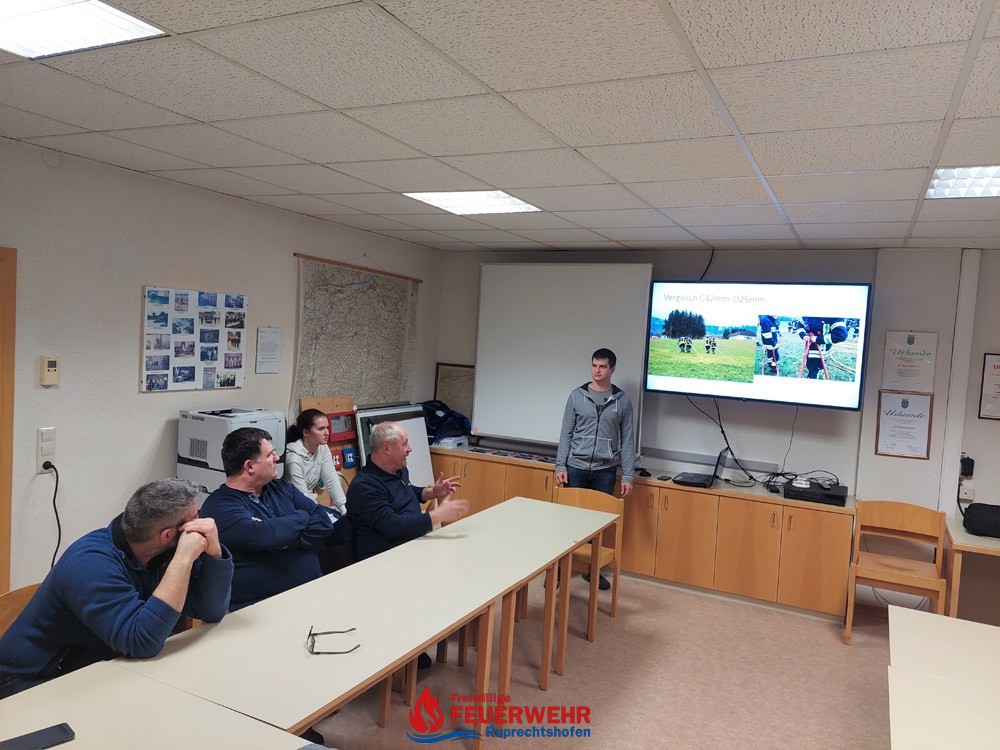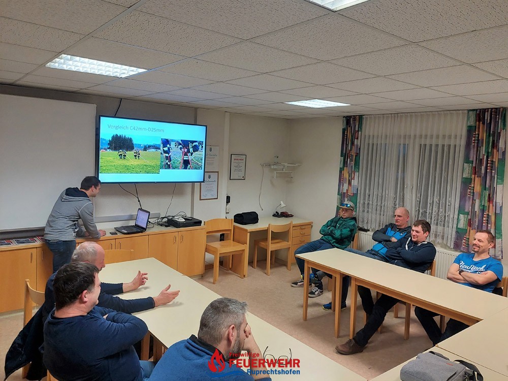 Nach dem Einrücken ins Feuerwehrhaus und der Versorgung der Fahrzeuge wurden noch die Einsatzbilder und Videos des Waldbrandes von dem Rax Einsätze im Oktober 2021 gezeigt und darüber in Verbindung mit dieser aktuellen Übung gesprochen.