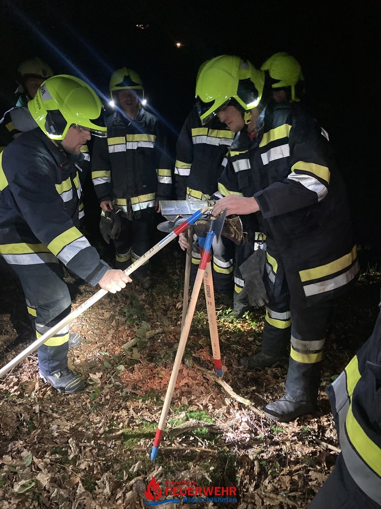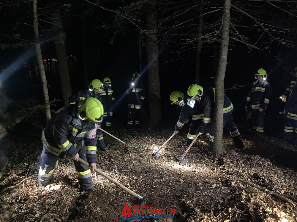 Im anschließenden Teil des Abends folgte eine praktische Übung in einem kleinen Waldstück, dass dankenswerter Weise von Familie Herzog in Schlatten zur Verfügung gestellt wurde.
