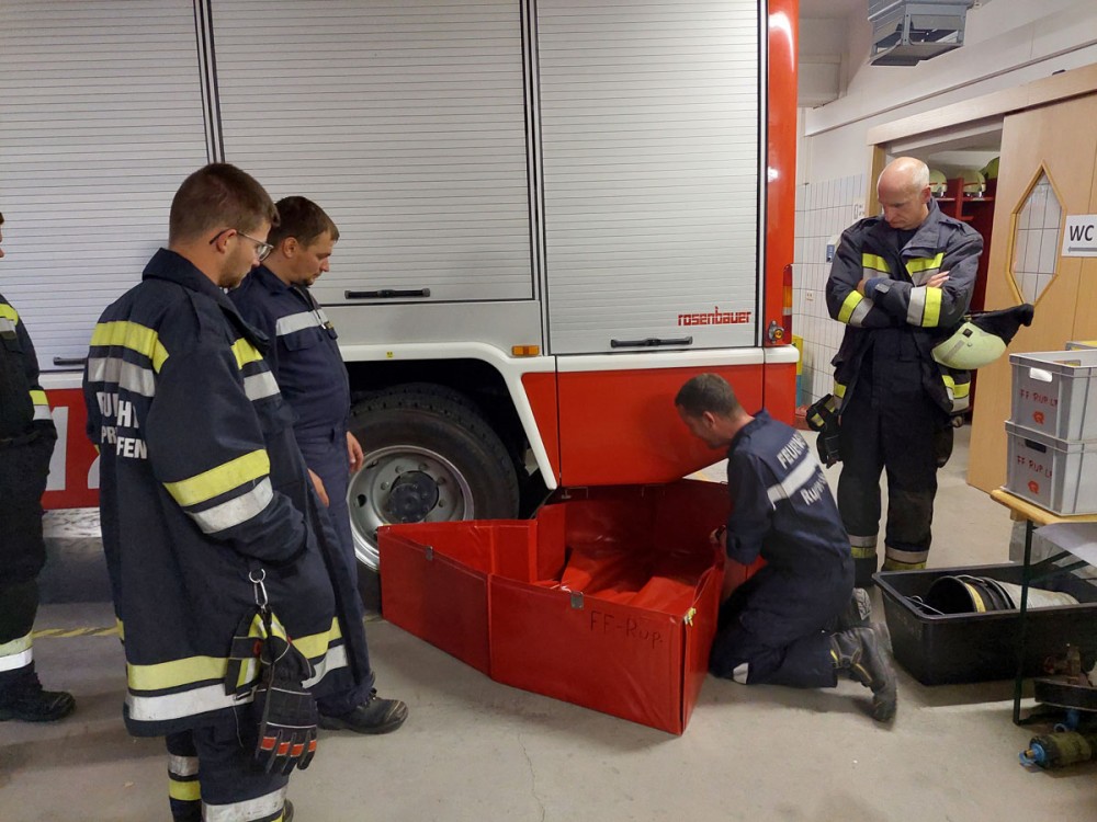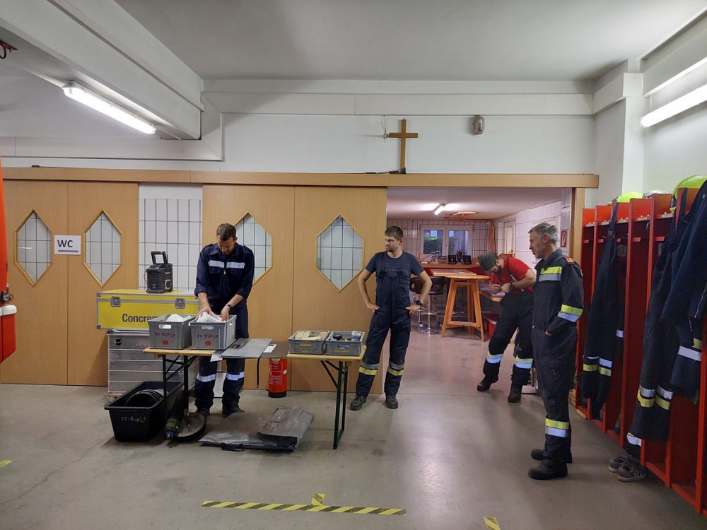 Auch in unserer Feuerwehr ist eine Grundausrüstung für kleinere Schadstoffeinsätze vorhanden und wird auch bei den Übungen regelmäßig beübt.