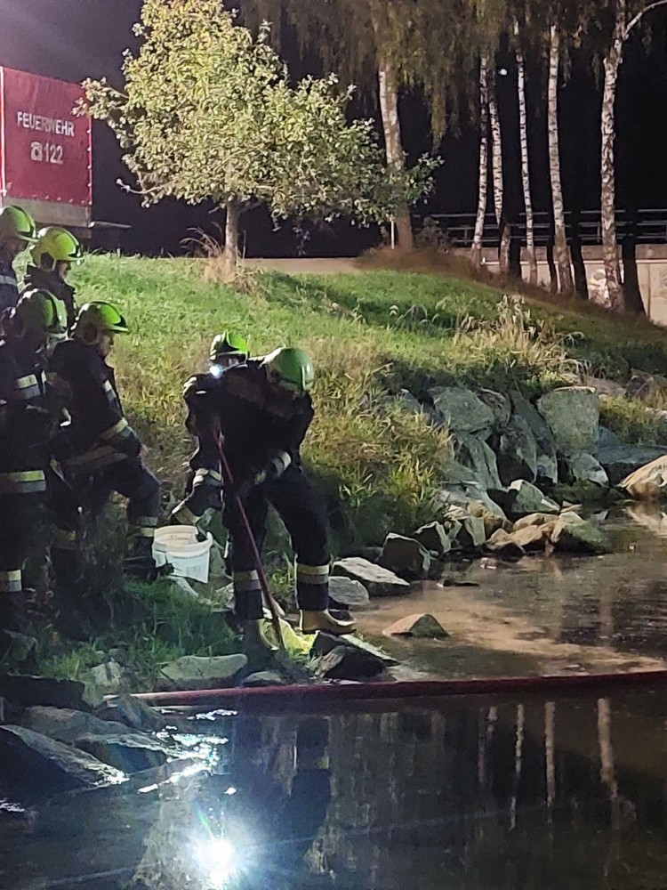 Zu Beginn konnten im Feuerwehrhaus die verfügbaren Mittel und Stoffe für derartige Einsätze kennengelernt werden. Im praktischen Teil wurde dann am Ötscherblick und im Melkfluss bei Rottenhof geübt.