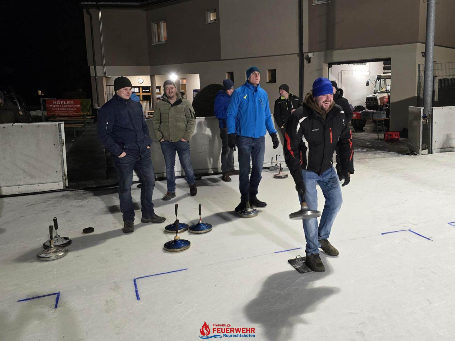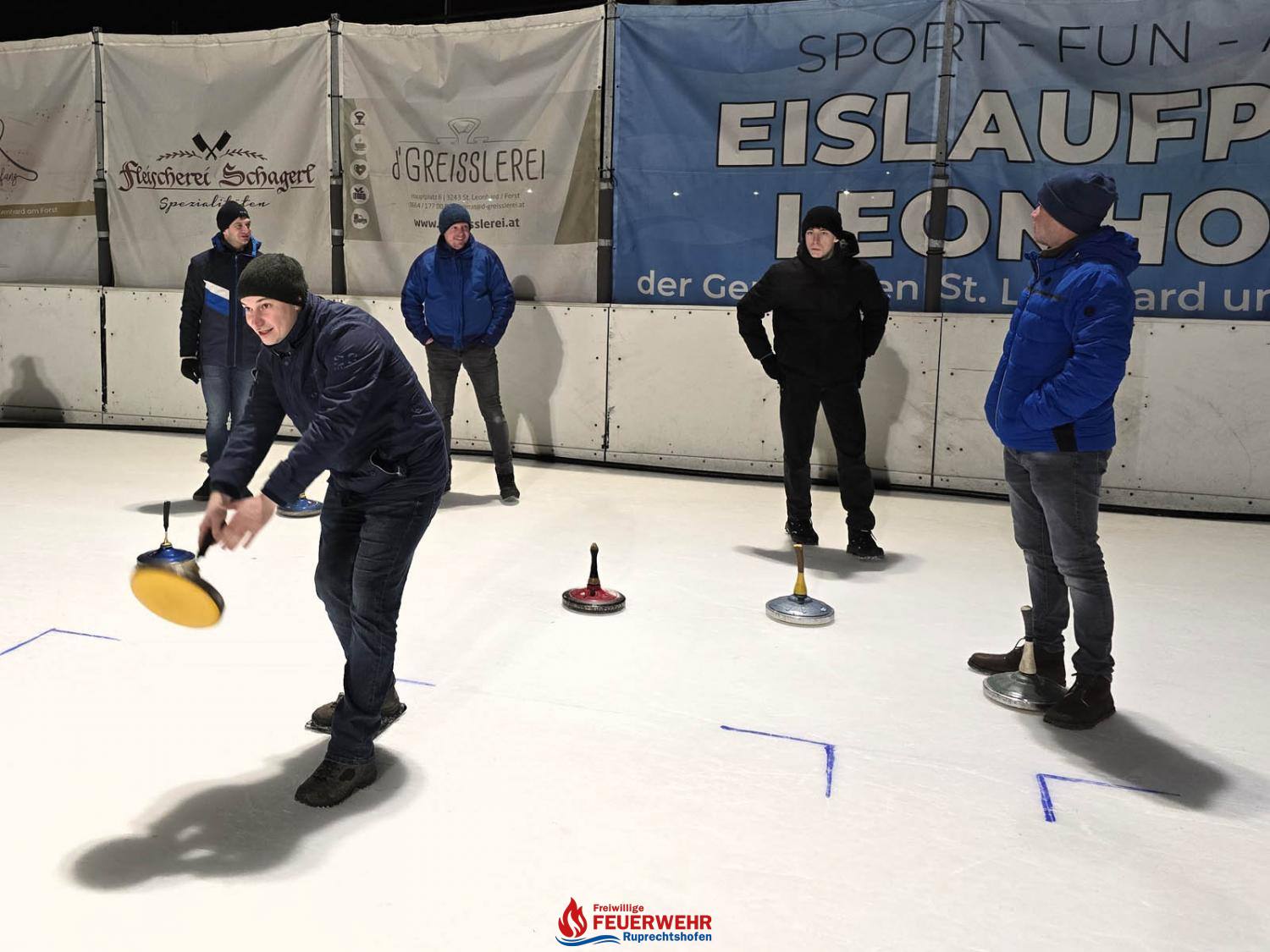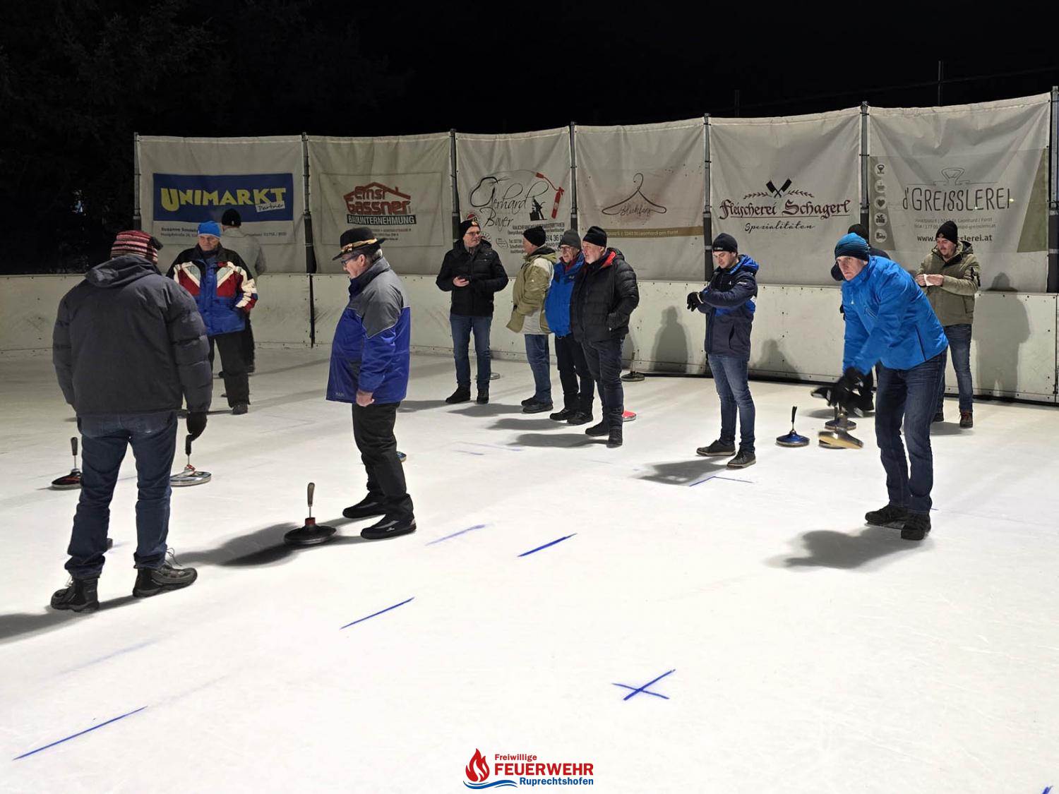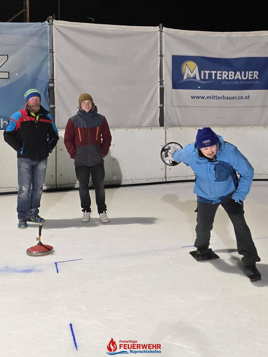Insgesamt 21 Feuerwehrmitglieder verbrachten ein paar nette Stunden auf der Eisfläche beim Stockschießen und versuchten, auf 5 „Moarschaften“ aufgeteilt, eine gute Platzierung zu erreichen.