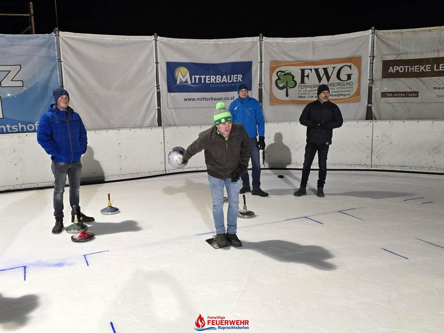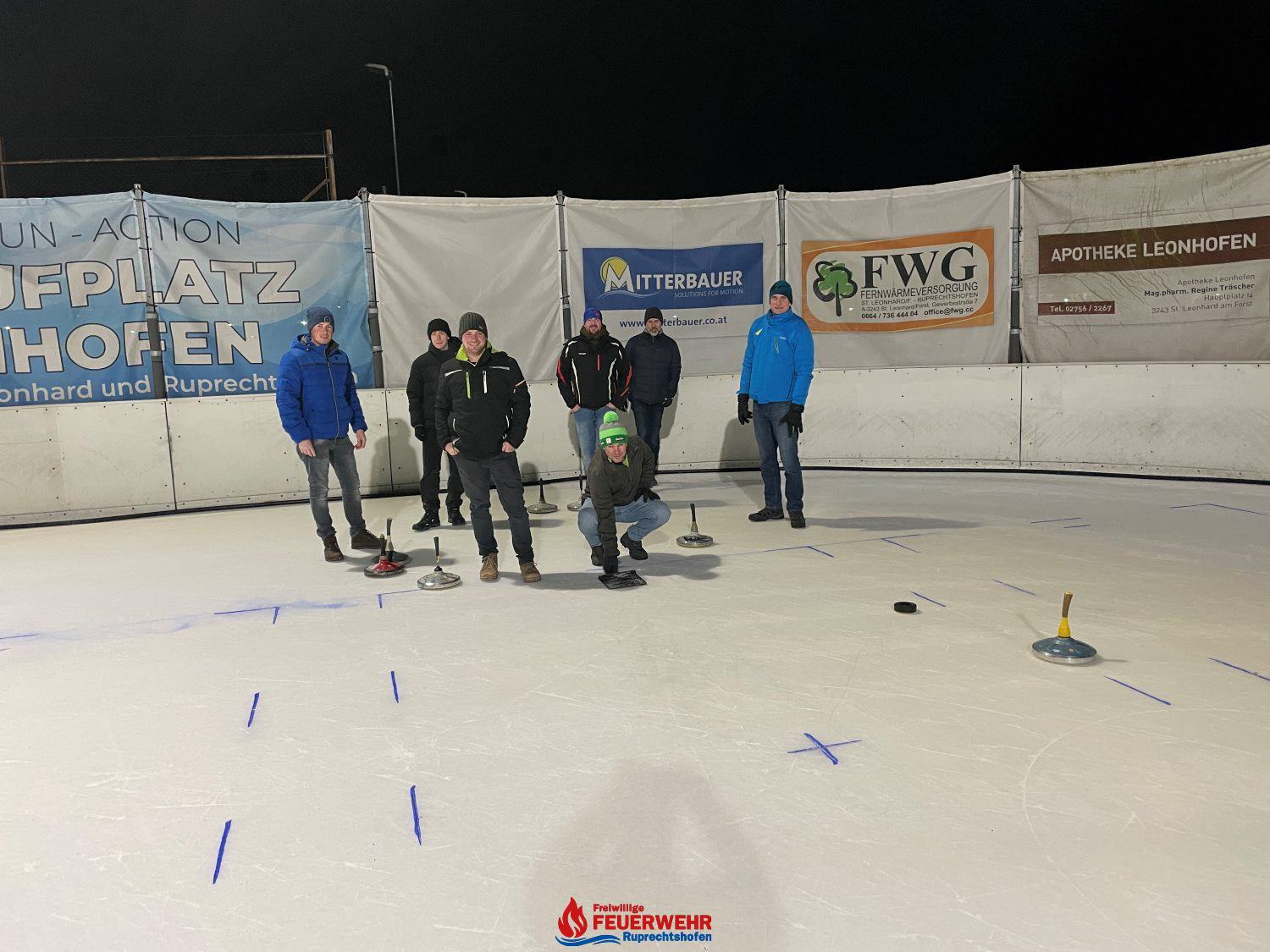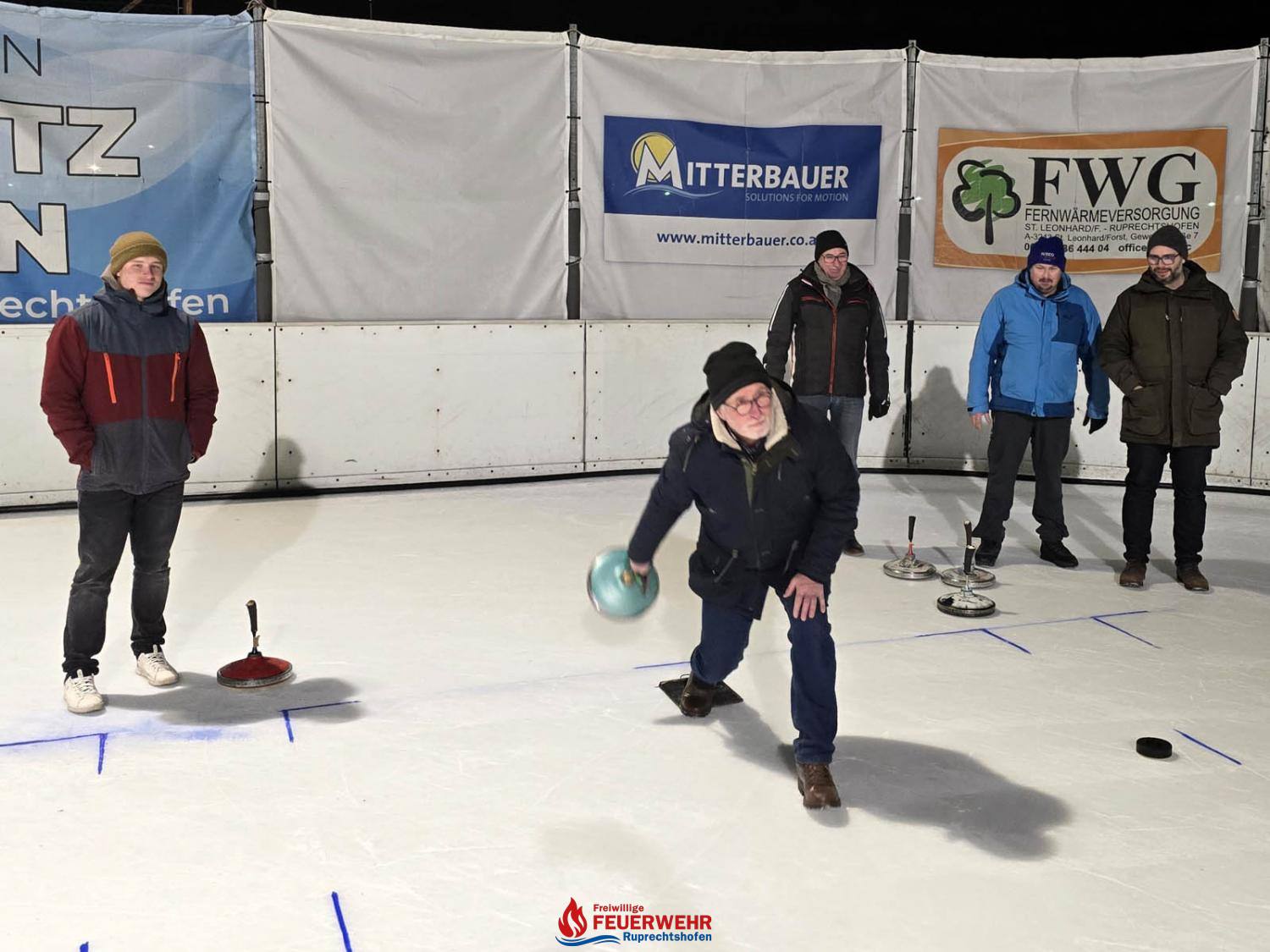 Insgesamt 21 Feuerwehrmitglieder verbrachten ein paar nette Stunden auf der Eisfläche beim Stockschießen und versuchten, auf 5 „Moarschaften“ aufgeteilt, eine gute Platzierung zu erreichen.