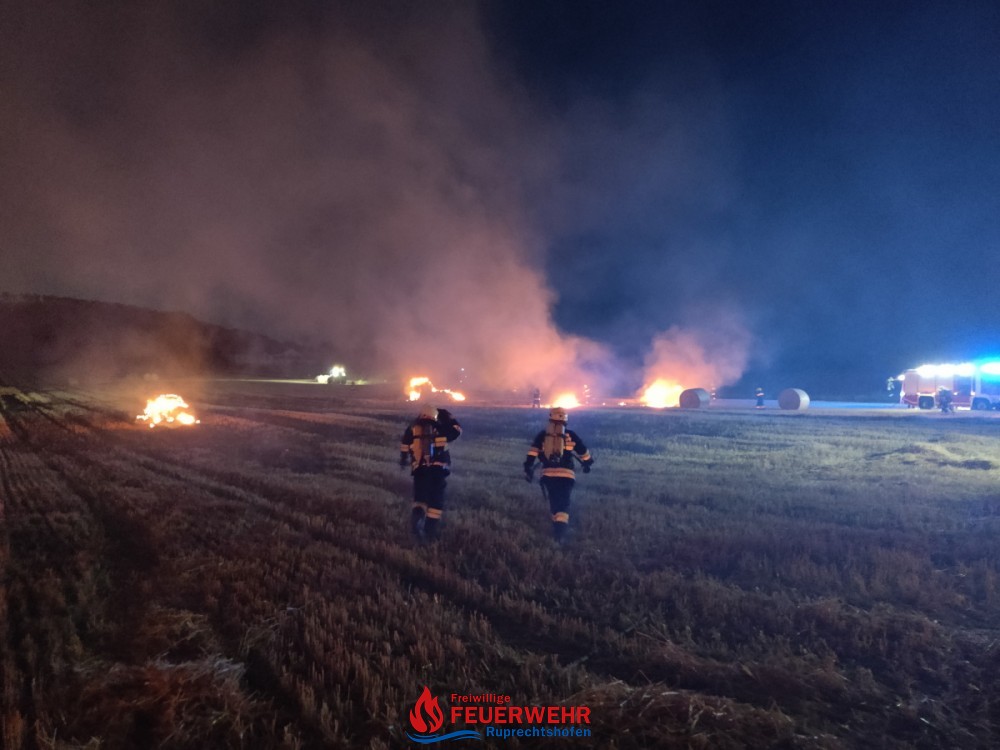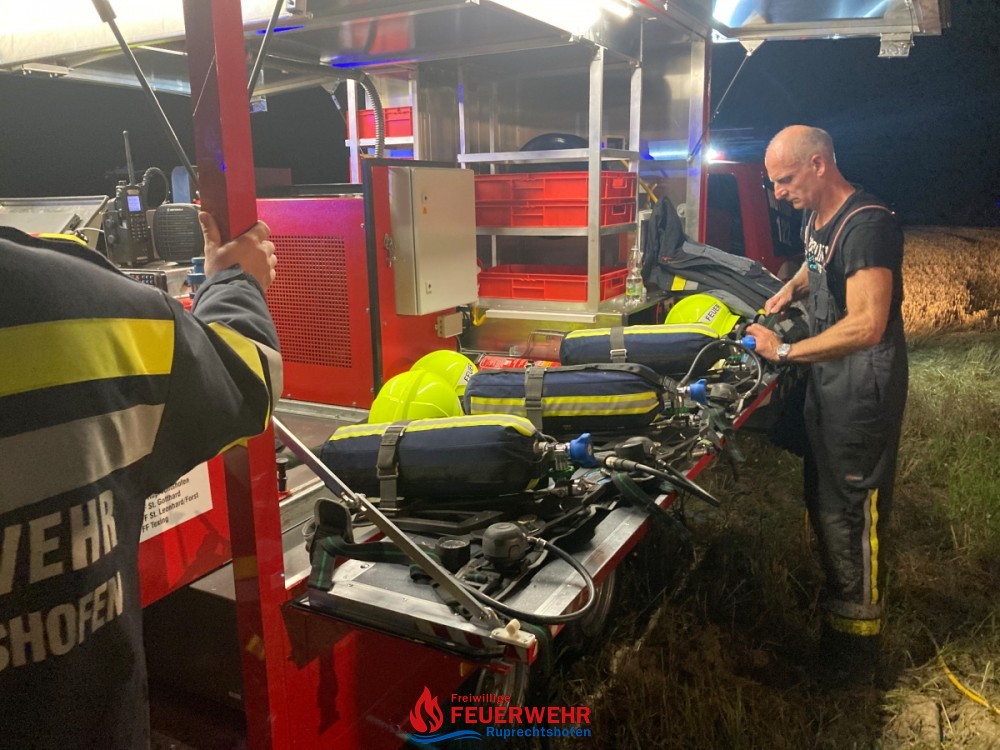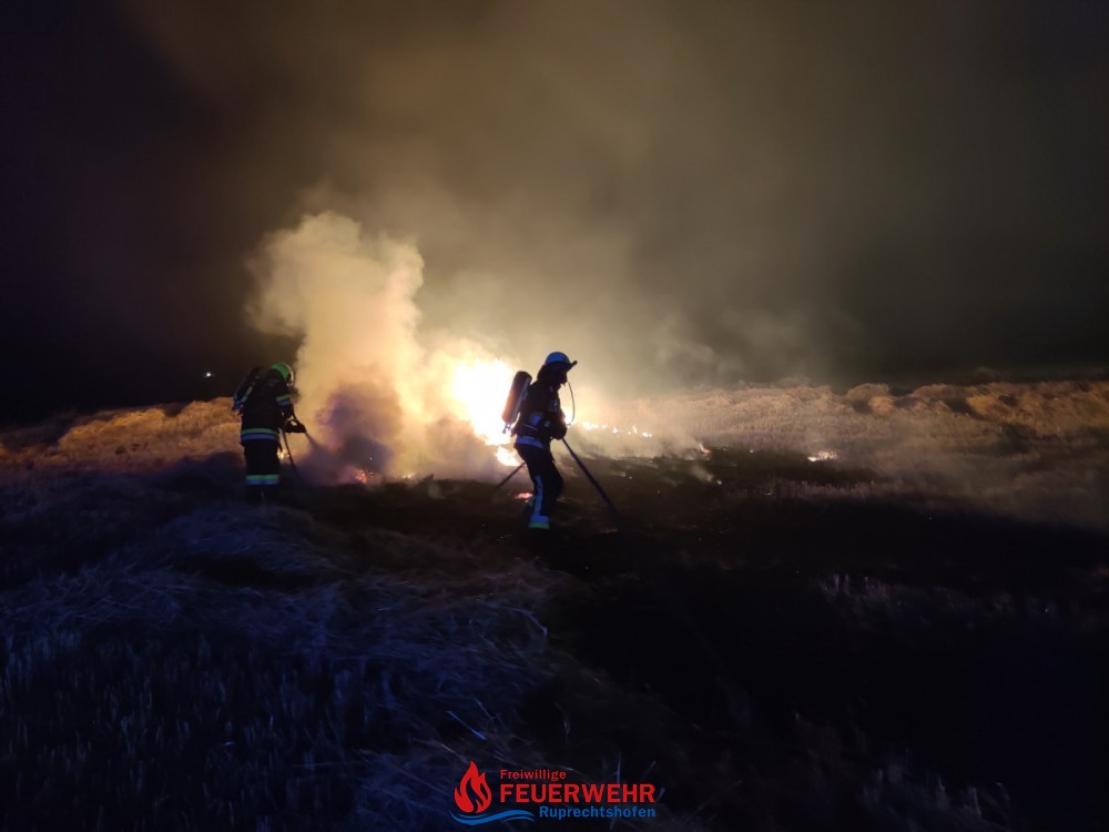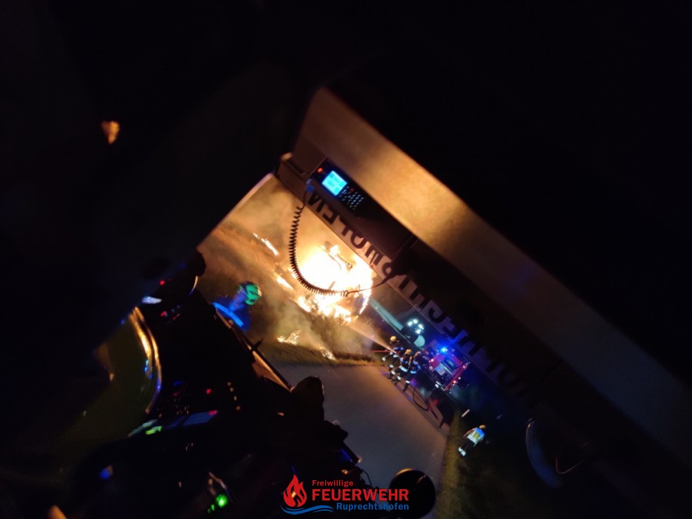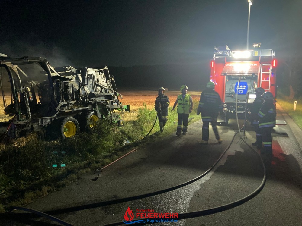 Am Dienstag, den 20. Juli um 21:46 Uhr wurde die FF Ruprechtshofen zur Unterstützung der FF St. Leonhard / F. zu einem Brand einer Strohpresse nach Haslach / Brandstatt alarmiert.