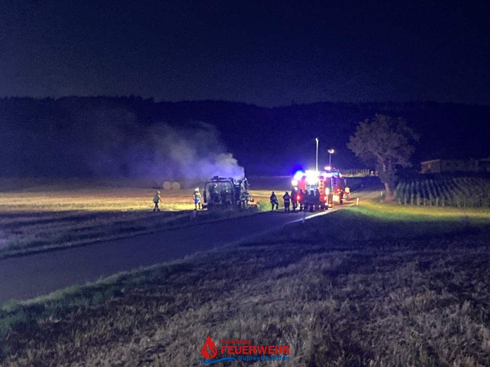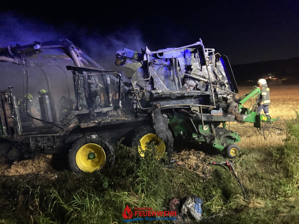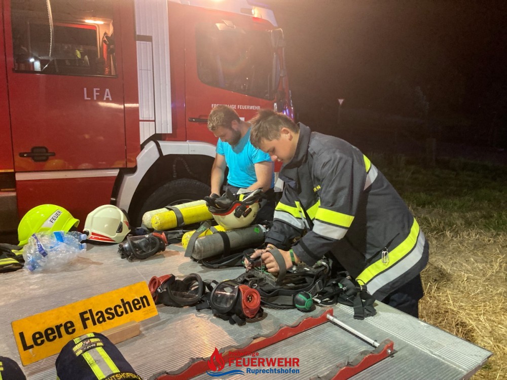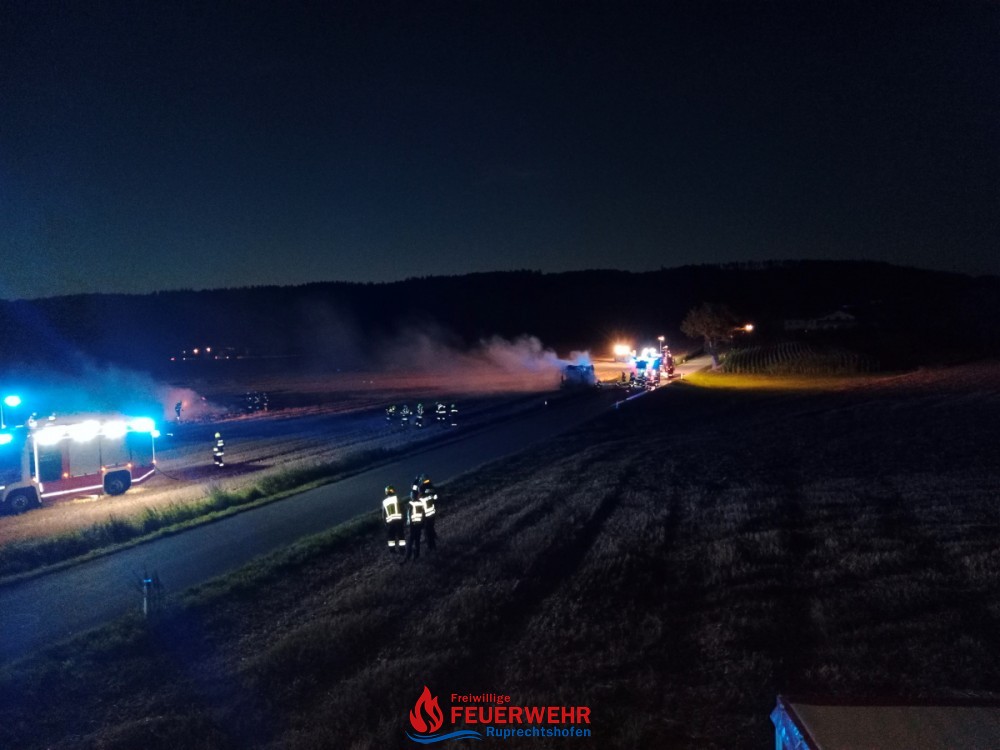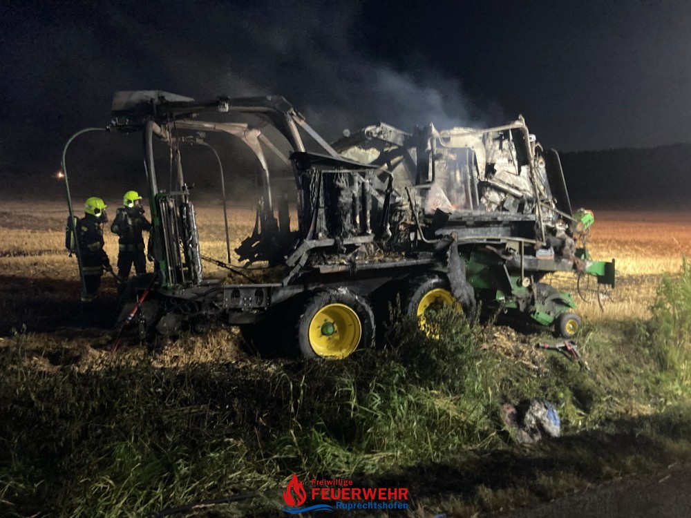 Am Dienstag, den 20. Juli um 21:46 Uhr wurde die FF Ruprechtshofen zur Unterstützung der FF St. Leonhard / F. zu einem Brand einer Strohpresse nach Haslach / Brandstatt alarmiert.