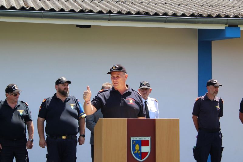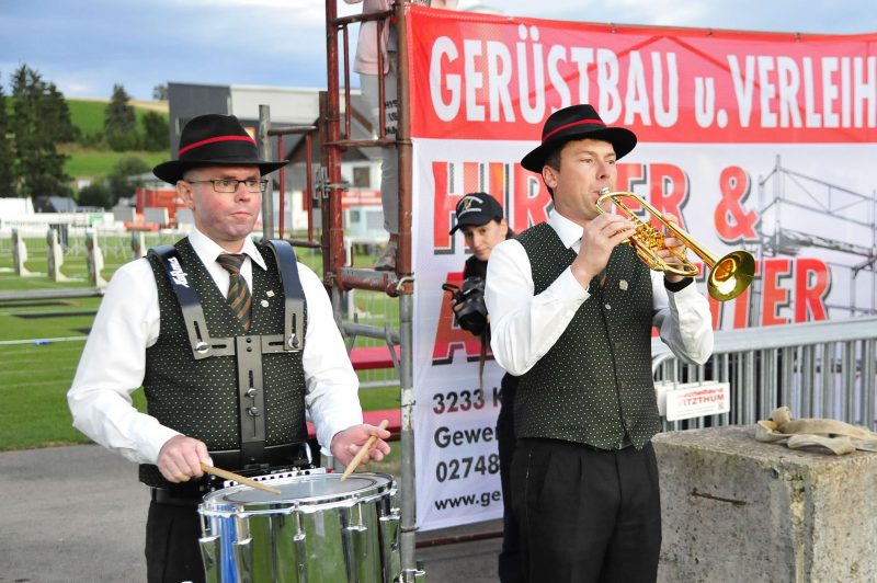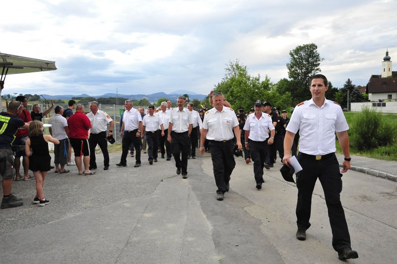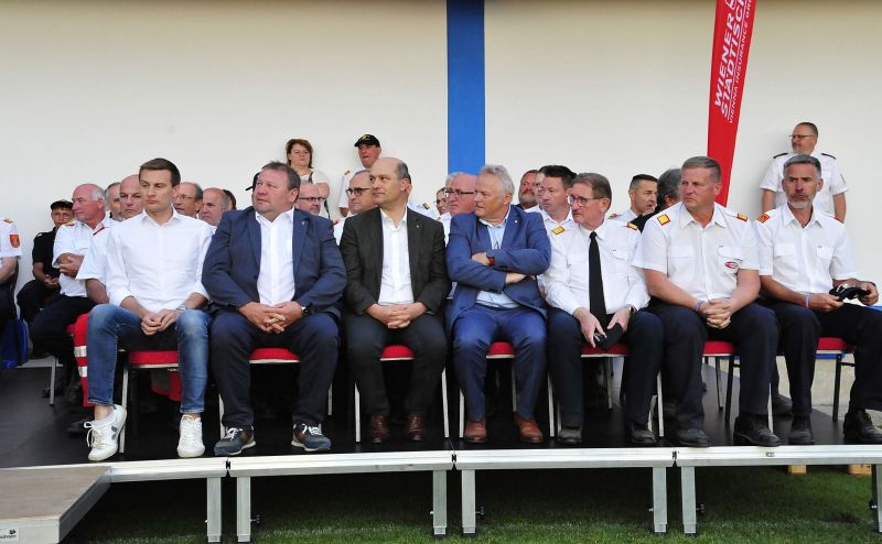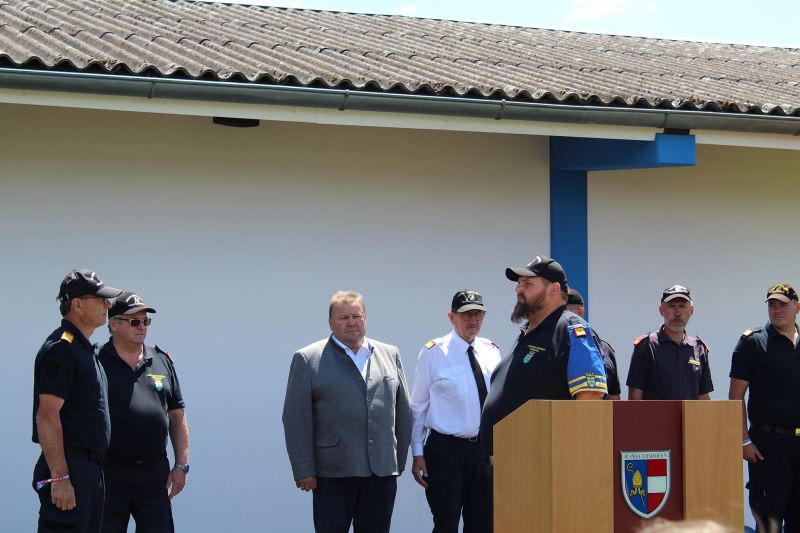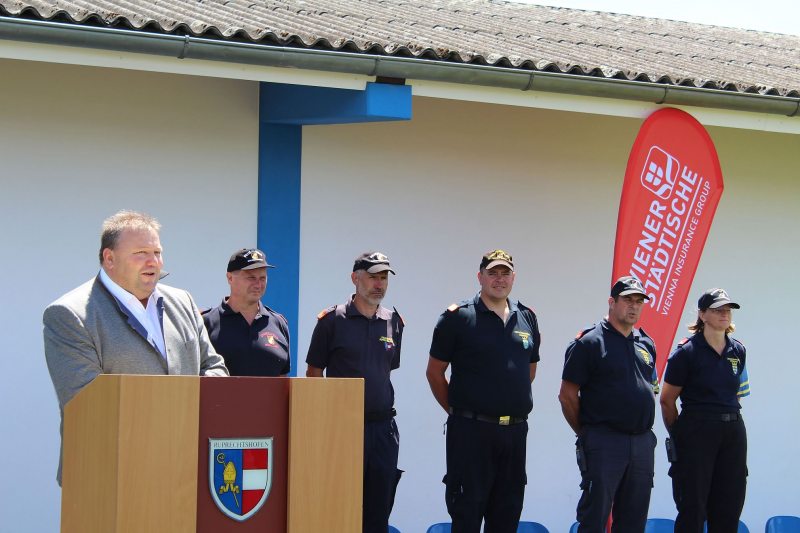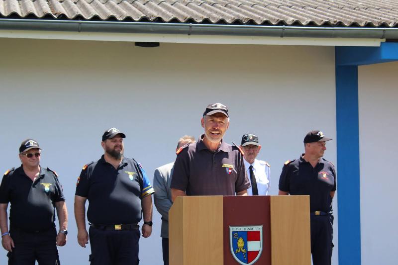 Zu Mittag stand dann gleich die Bewerbseröffnung am Programm. Die beiden Kommandanten und unser Bgm . Ing. Leopold Gruber-Doberer wünschten den Teilnehmern viel Erfolg.
