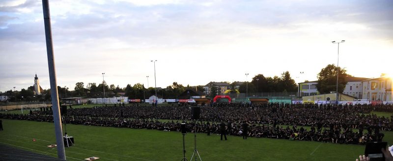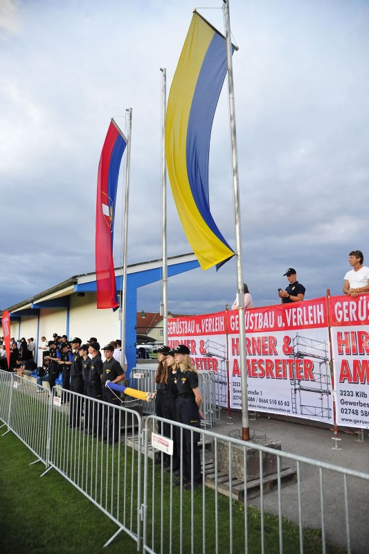 Am Abend wieder ein Höhepunkt des ersten Tages: Ein Unvergessliches Ereignis – die offizielle Lagereröffnung am Bewerbsplatz – der Sportanlage des FC Leonhofen.
