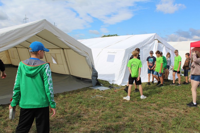 Unsere Betreuer und Feuerwehrjugendmitglieder haben ihre Zelte bereits gestern aufgebaut. Dadurch brauchten sie heute nur noch das Quartier – ihre Zelte – mit den neuen beiden Maskottchen beziehen. Sie werden unseren Jugendlichen besonders zur Seite stehen.