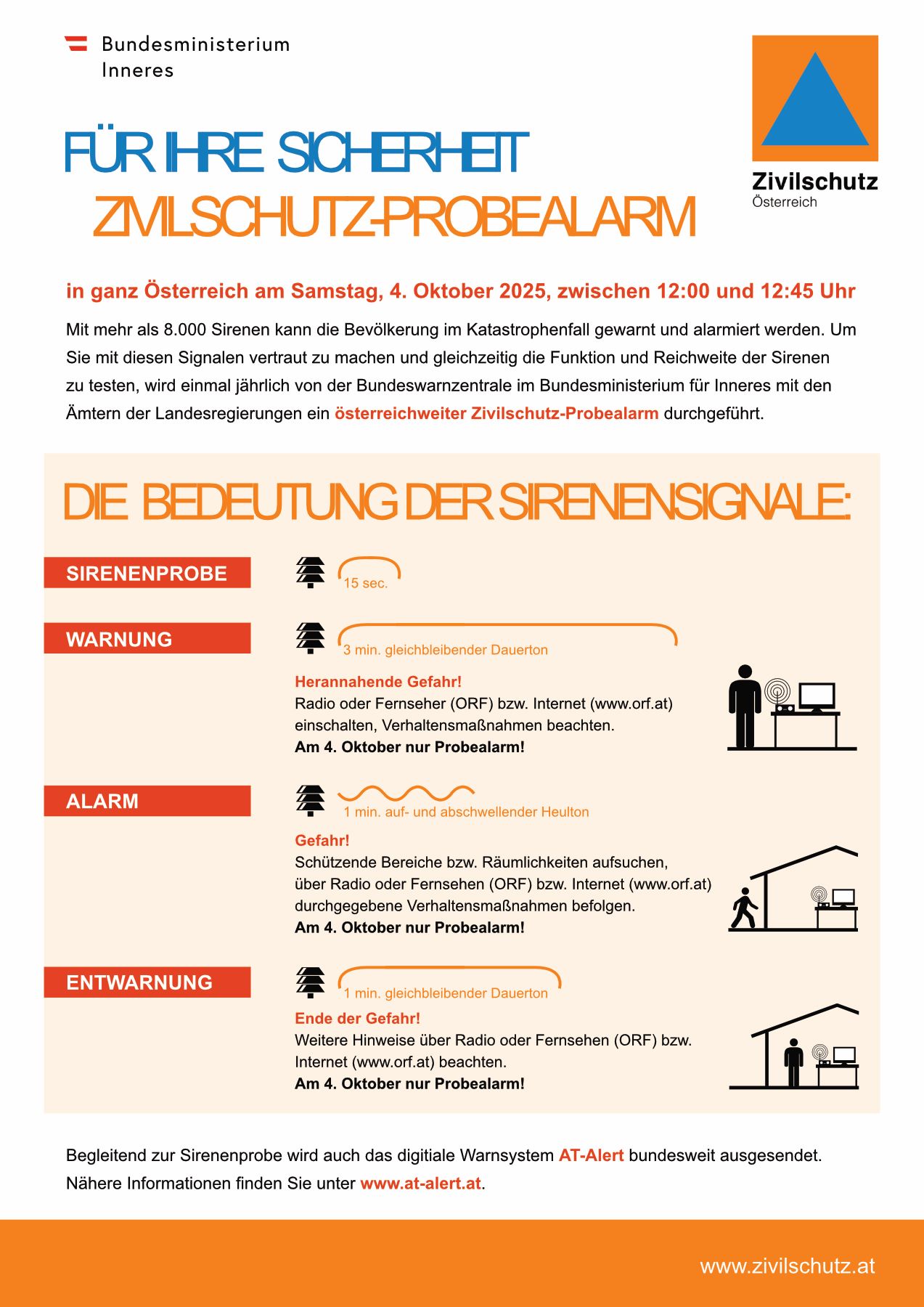 Am 4. Oktober findet der diesjährige Zivilschutz-Probealarm in ganz Österreich statt. Dabei werden die mehr als 8.000 Sirenen sowie AT-Alert ausgelöst.