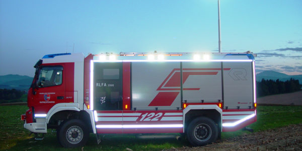 Das Rüstlöschfahrzeug mit Allradantrieb ist eine Kombination aus Tanklösch- und Rüstfahrzeug und dient vor allem zur Brandbekämpfung, Menschenrettung und Durchführung technischer Hilfeleistungen.